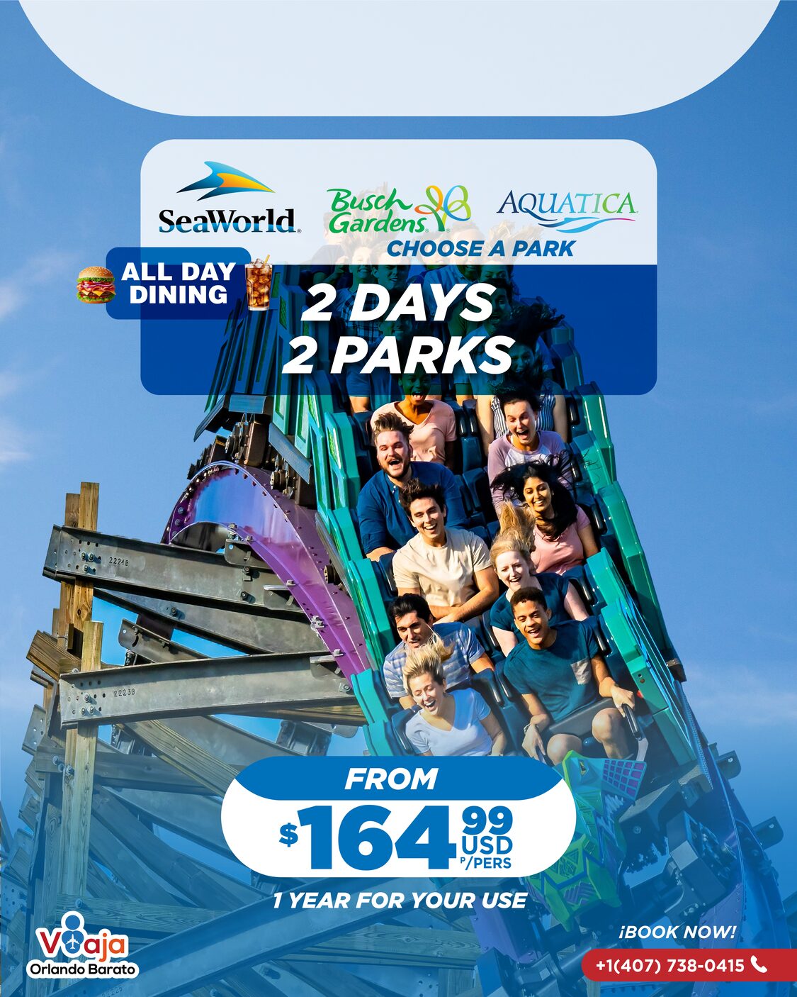 Florida's most exciting destinations, with the benefit of unlimited food included on both days of your visit to: