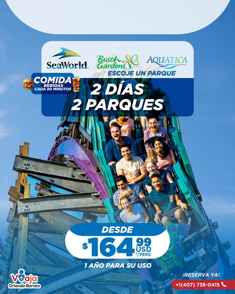 más emocionantes de Florida, con el beneficio de comida ilimitada incluido en ambos días de tu visita a: